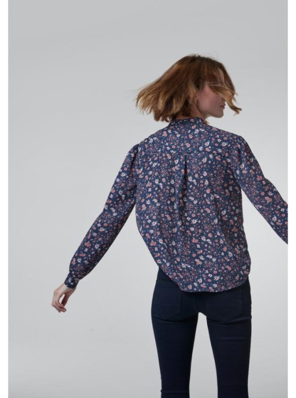 Cette blouse au charme bohème dévoile un imprimé floral délicat et une coupe inspirée des années rétro, créant une silhouette romantique et intemporelle.