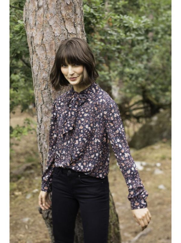 Les couleurs vibrantes de ce liberty apportent une touche de luminosité à vos tenues hivernales, parfaite avec un manteau camel ou associée à nos denims surteints noirs.