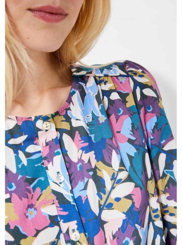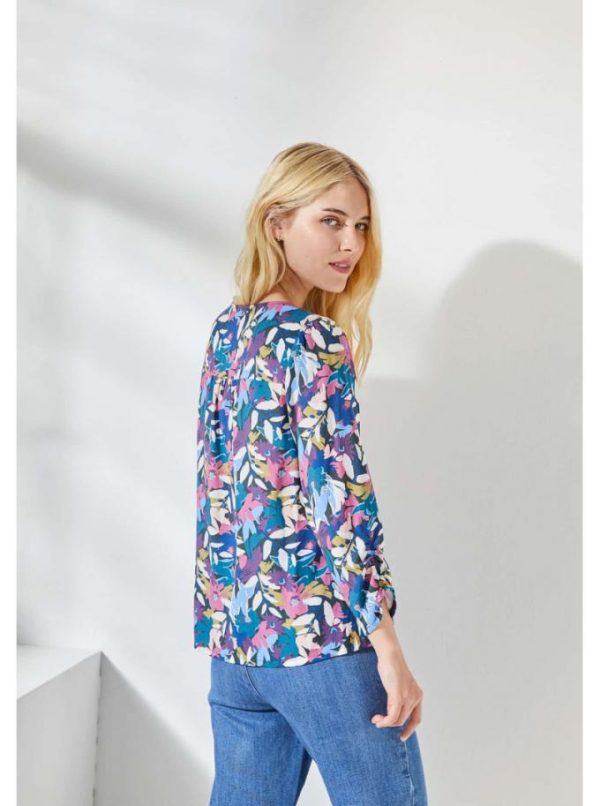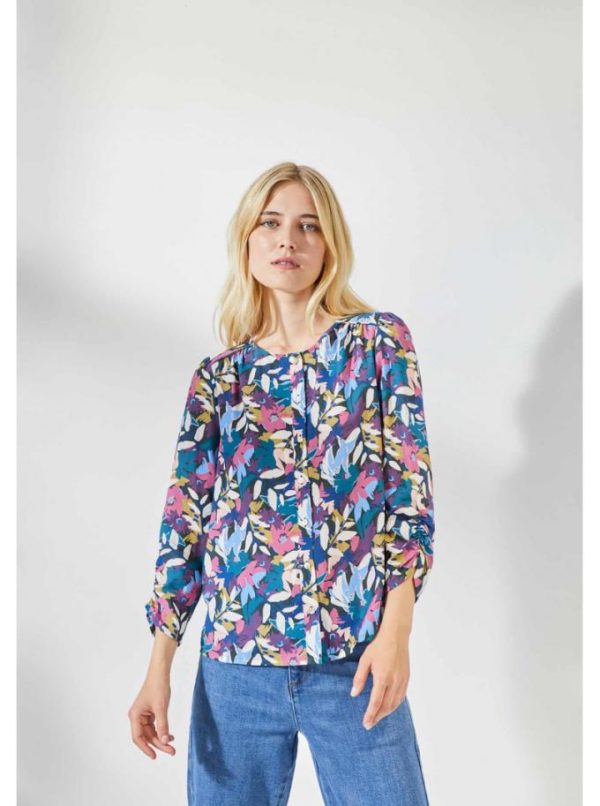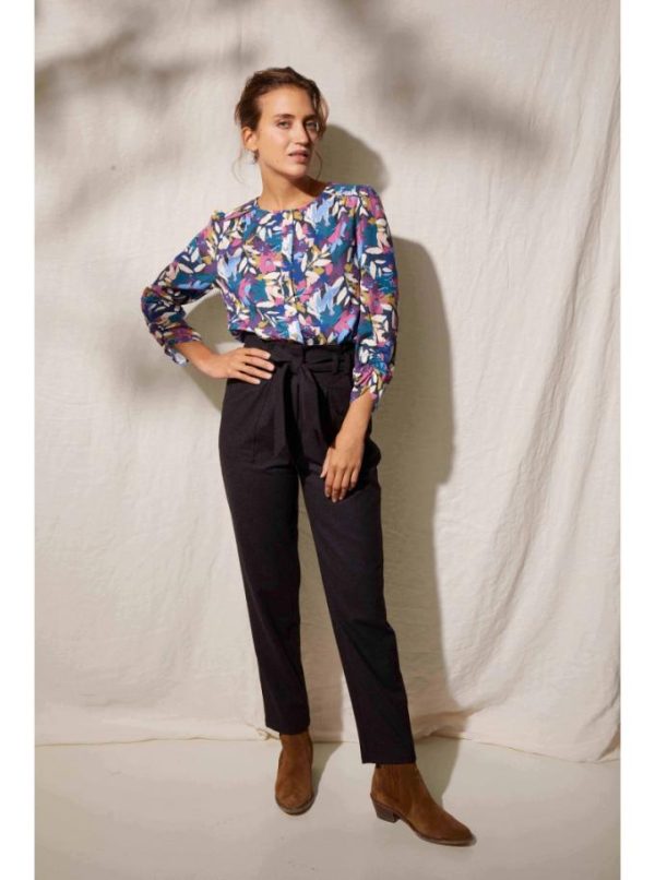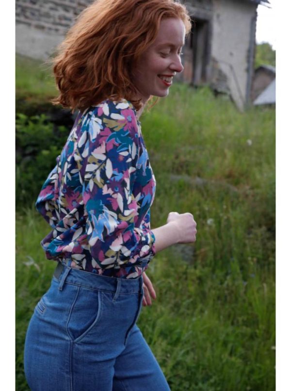 Blouse manches longues, col rond, entièrement boutonnée sur le devant. Détails d’empiècement sur les épaules ornés de fronces, bas de manches froncées. L’imprimé Ombrage est exclusif et ses couleurs ont été travaillées par notre studio de création en harmonie avec la collection.