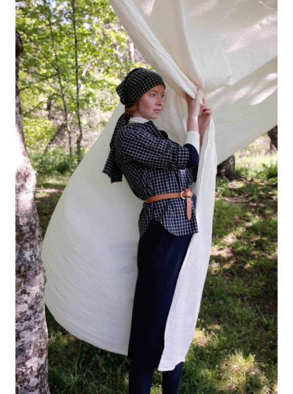 Notre blouse Florianne est confectionnée dans un tissu composé de 86% de coton (100% coton biologique) et 14% de Lin.