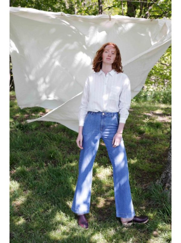 Notre chemise Rita est confectionnée dans un tissu composé de 70% de coton (100% coton biologique) et 30% de Lin.