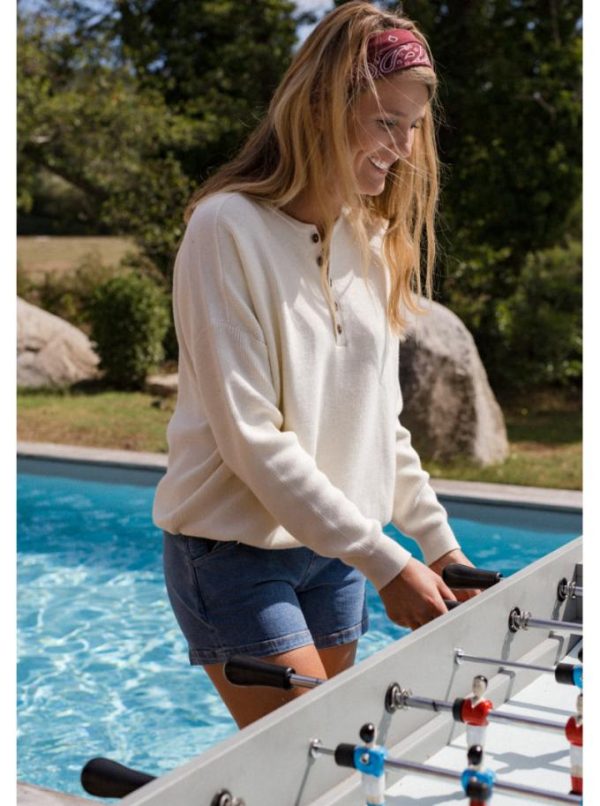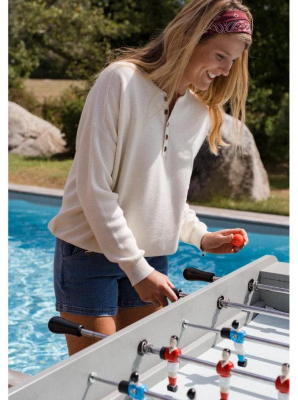 Certifié GOTS, on adore ces délicieux boutons qui réinterprètent avec modernité l’encolure ronde classique.
