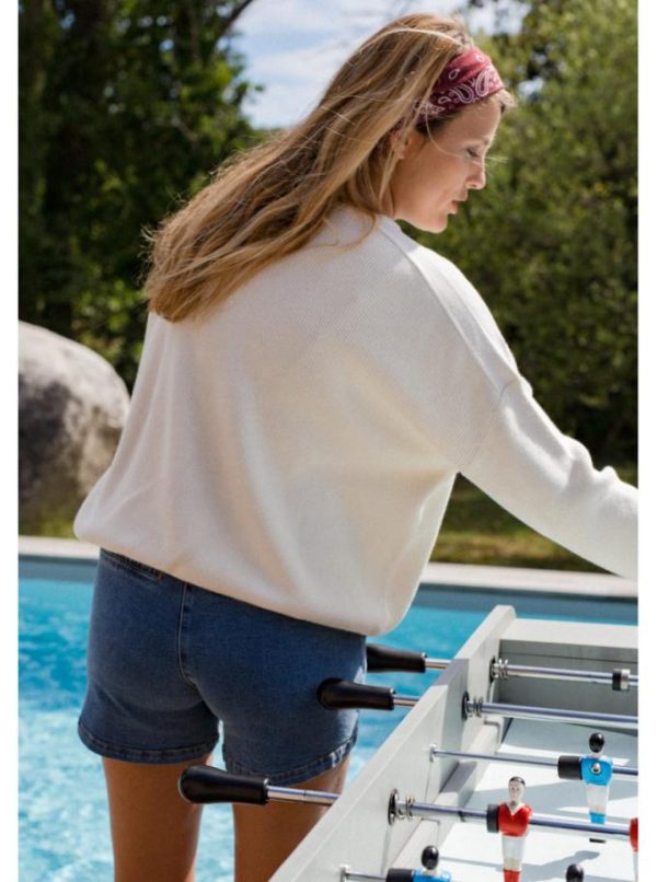 Un pull en maille à côtes anglaises et fantaisie qui se porte avec une coupe ample pour un style décontracté raffiné.