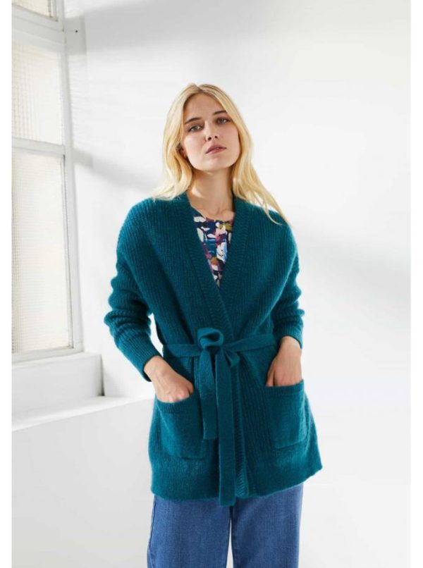 Notre gilet Mantine est tricoté uniquement avec des fibres naturelles. Composé de 38% de MOHAIR, 37% de COTON et 24% de LAINE.