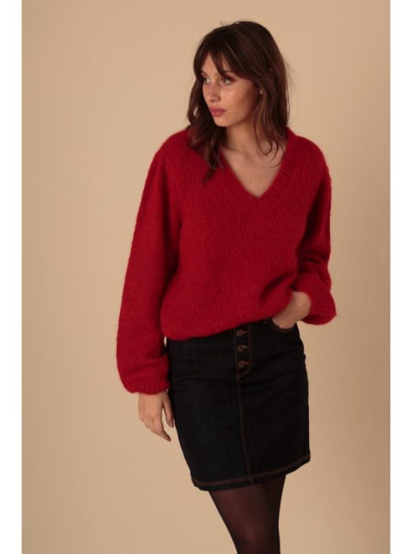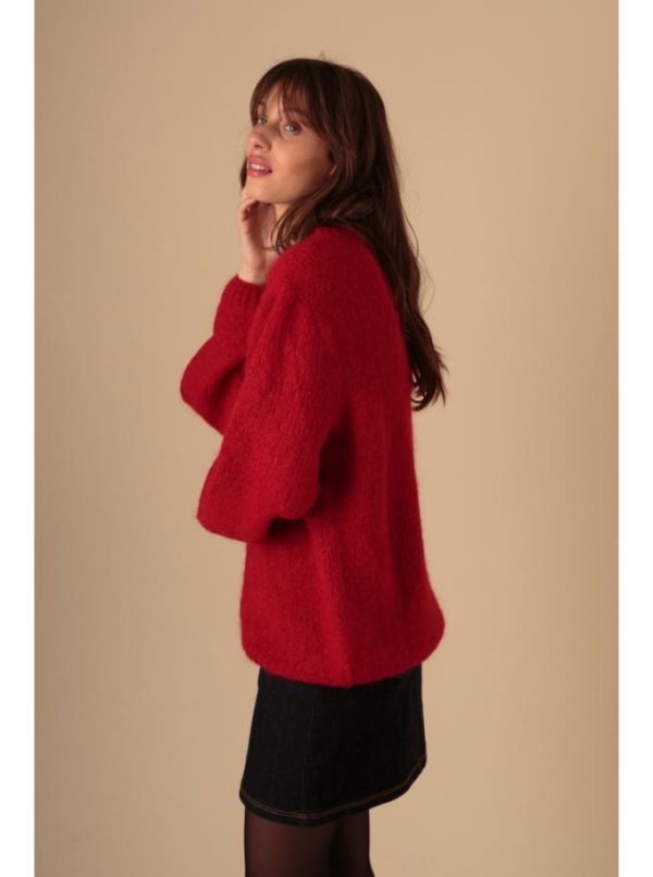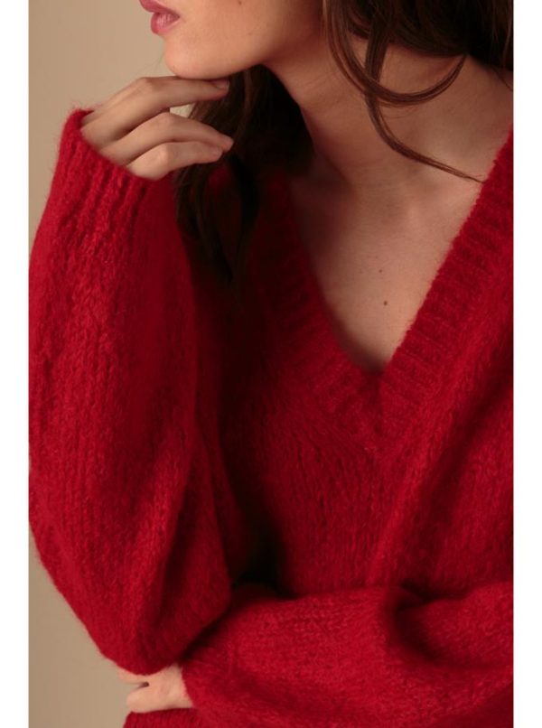 Pull col v avec fronces en tête de manche. Dimensions : Longueur 62 cm / Tour de poitrine 112 cm Léa mesure 1m67 et porte une taille 1 74% suri alpaga 22% laine 4% polyamide Lavage à la main uniquement Séchage sur cintre, à l’abri du soleil Repassage sur l’envers Ne pas laisser tremper Ne pas tordre