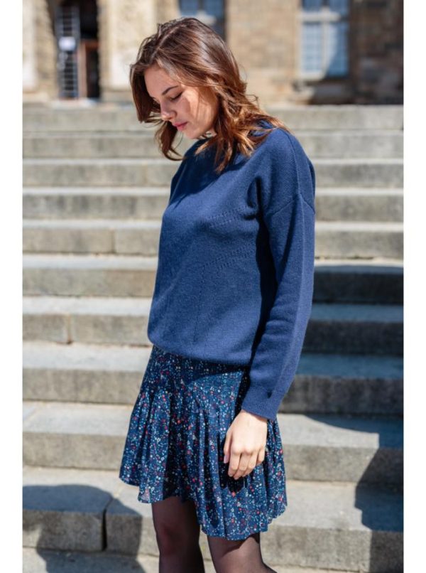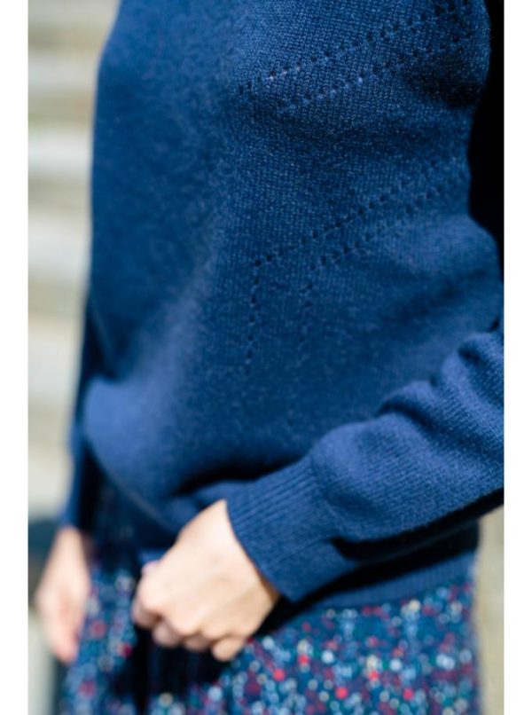 Pull en cachemire. Col rond avec jeux de points ouverts. Emmanchures descendues. Rib en bas et poignet. Dimensions : Longueur 60 cm / Tour de poitrine 102 cm 100% cachemire La laine est une véritable enveloppe de chaleur et de douceur. Matière première naturelle, renouvelable et biodégradable. Le cachemire est une matière première noble, renouvelable et biodégradable, dotée d’une douceur inégalable. Lavage à la main uniquement Séchage sur cintre, à l’abri du soleil Repassage sur l’envers Ne pas laisser tremper Ne pas tordre