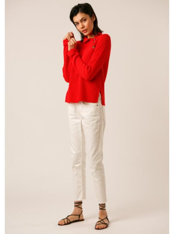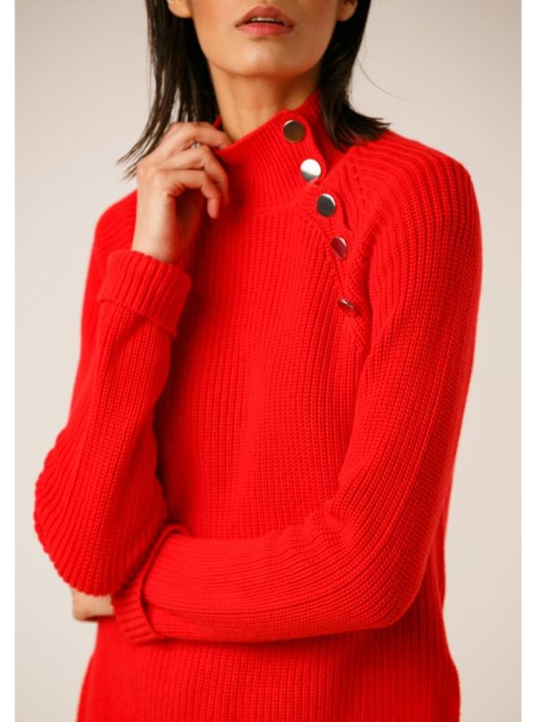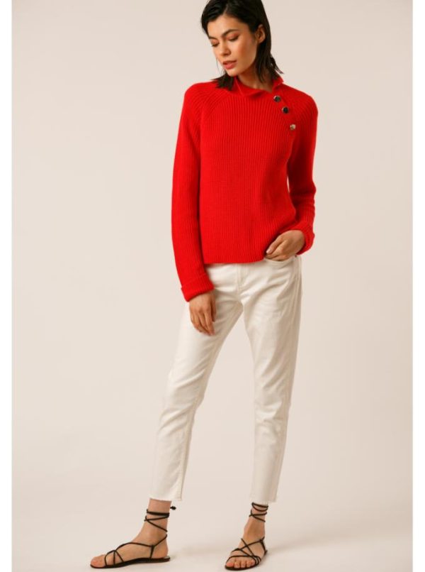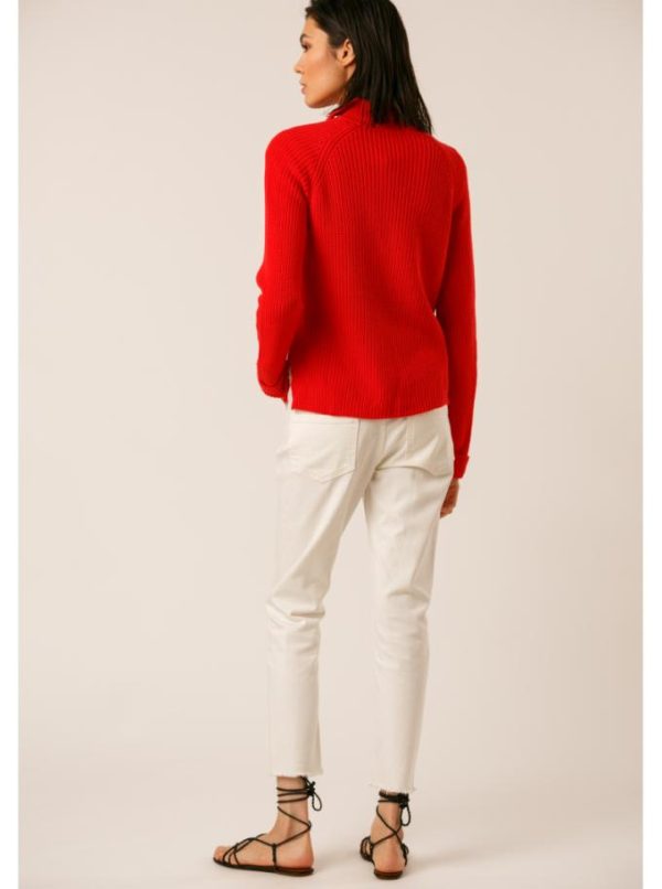 Pull col cheminée en côte perlée.
