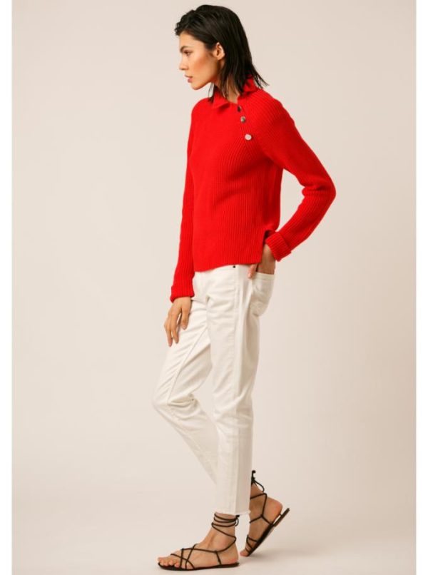 Patte de boutonnage déportée sur la couture raglan.