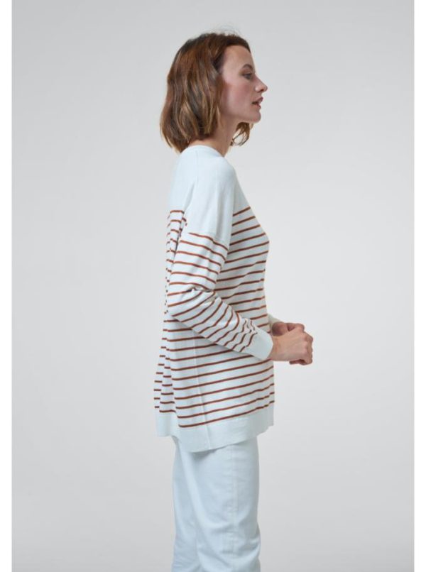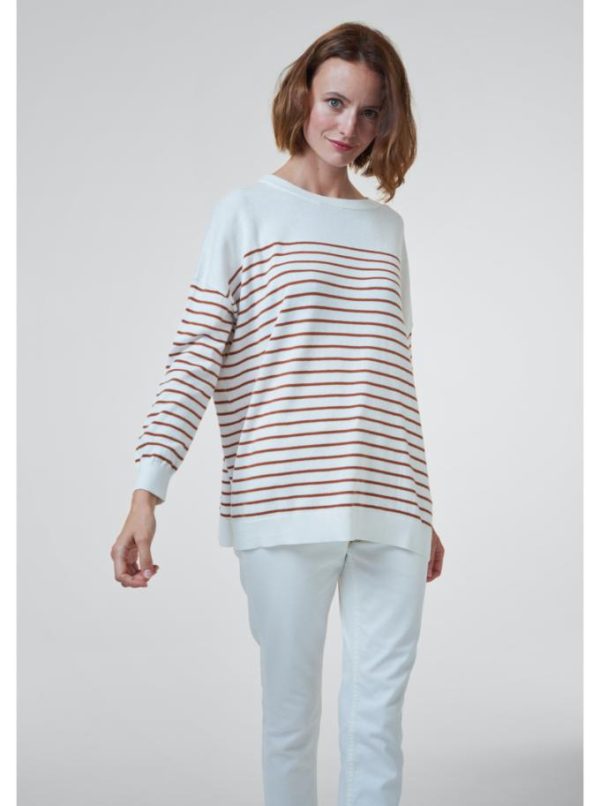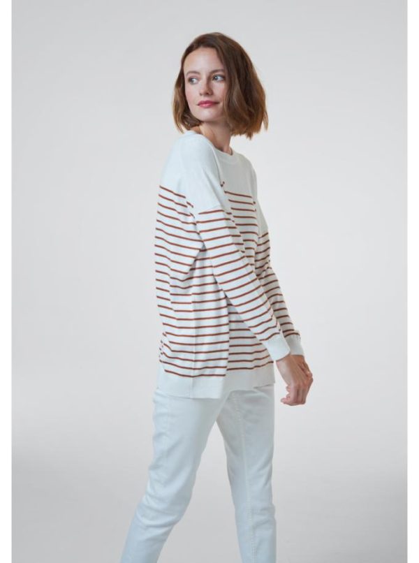 Ekyog Pulls & Gilets | Femme Pull Celes Off White/pecan Stripes