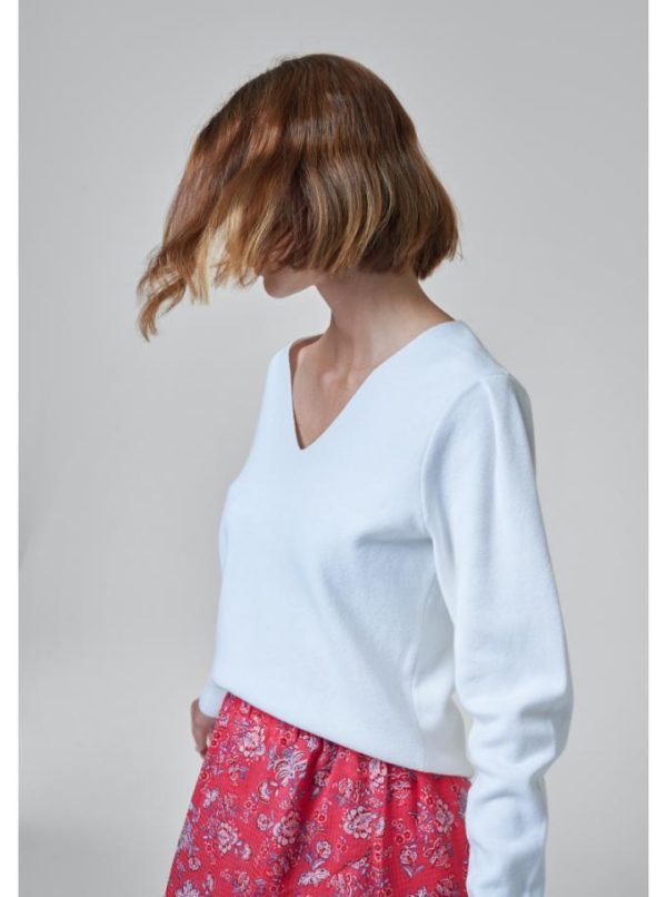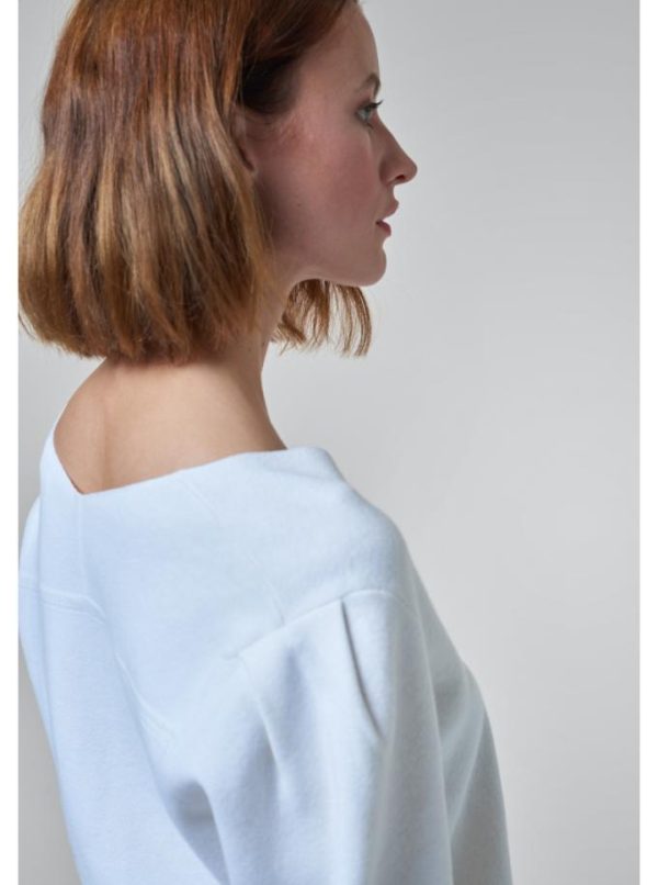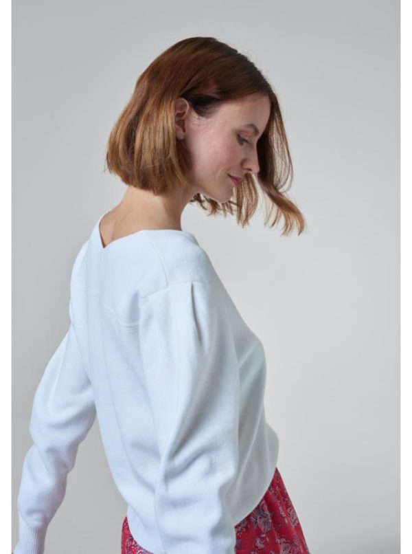 En off-white ou en noir, ce pull en coton biologique et en laine, est un nouveau basique élégant et minimaliste. Les fronces aux épaules et sa coupe courte et droite, apportent un volume structuré, moderne et créatif. Ample en haut de l’emmanchure, on aime son bord de manche plus près du corps.