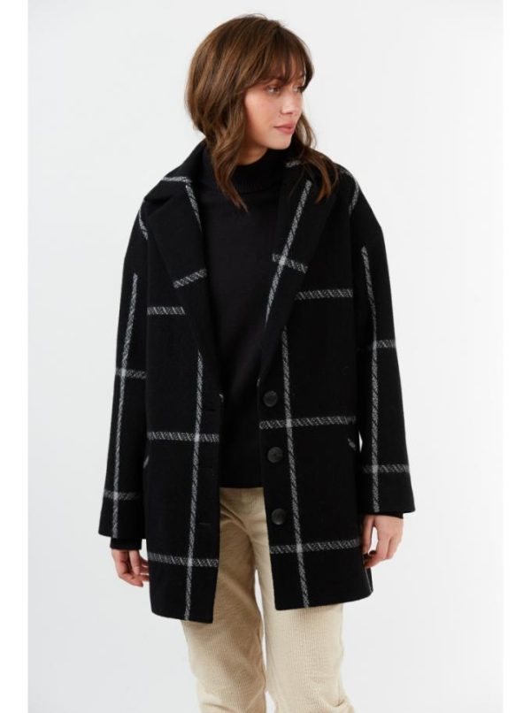 Ekyog Vestes & Manteaux | Femme Manteau Amandine Carreaux Noir/off White