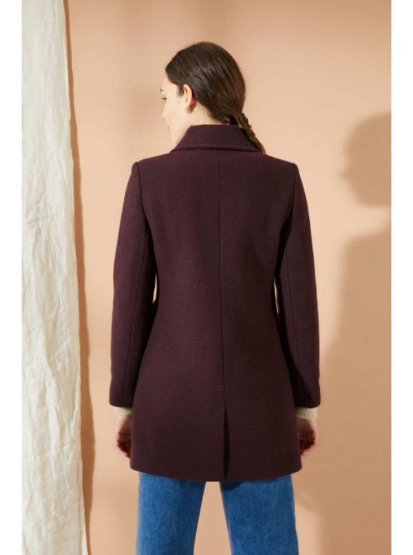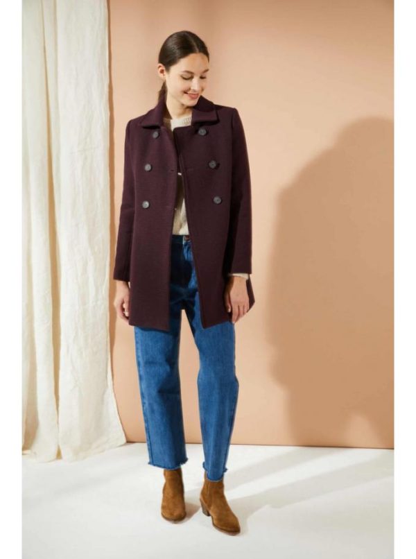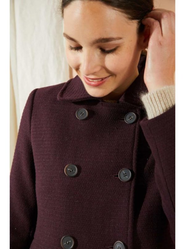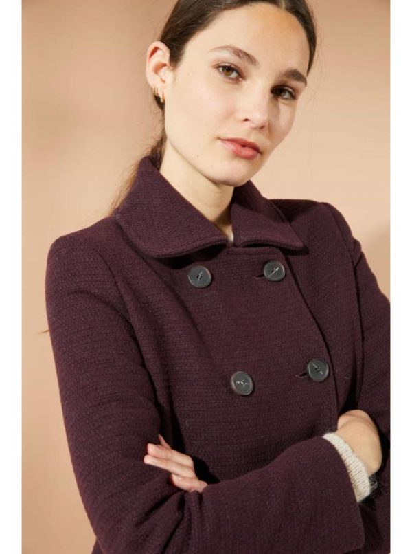 Manteau mi-long ceintré, se ferme en haut par un double boutonnage. Manteau entièrement doublé en polyester 100% recyclé. Ses boutons sont en polyester recyclé.