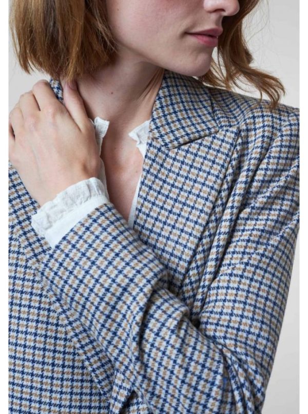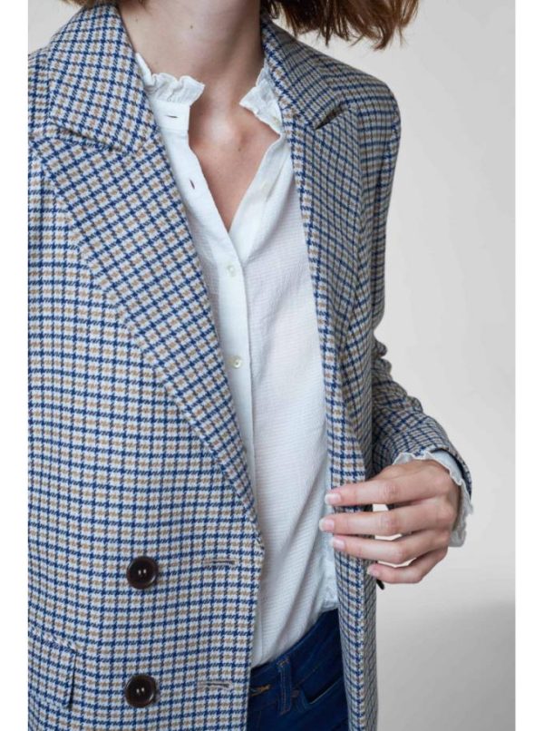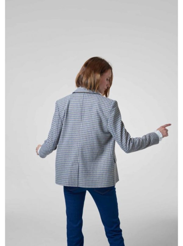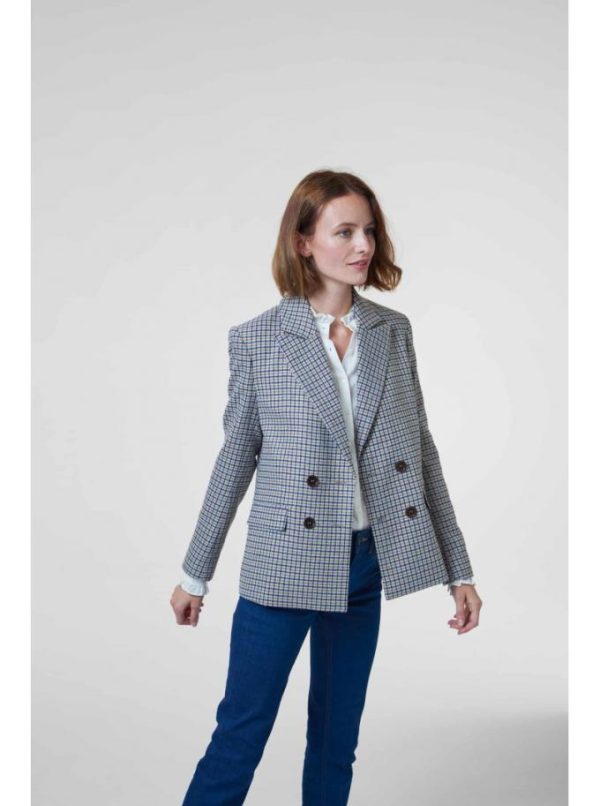 Cassidy est la petite veste anglaise rétro. En laine et polyester, elle est imprimée d’un pied de poule traditionnel et coloré.