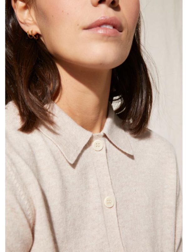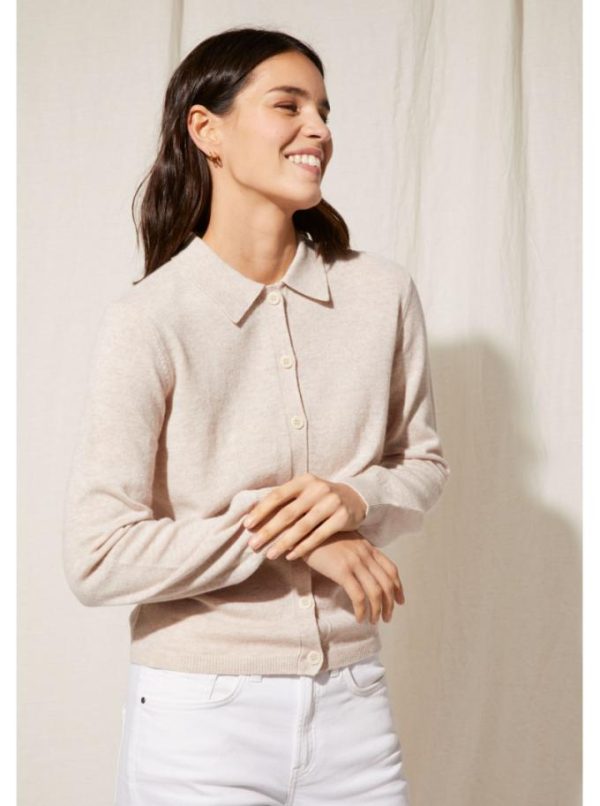 Gilet Femme Élégant en Laine et Soie – Dustino Beige Melange Ekyog