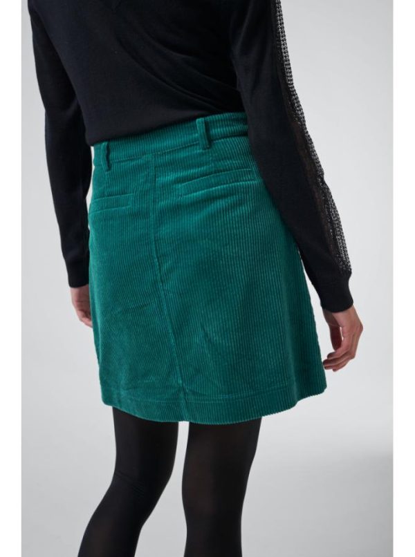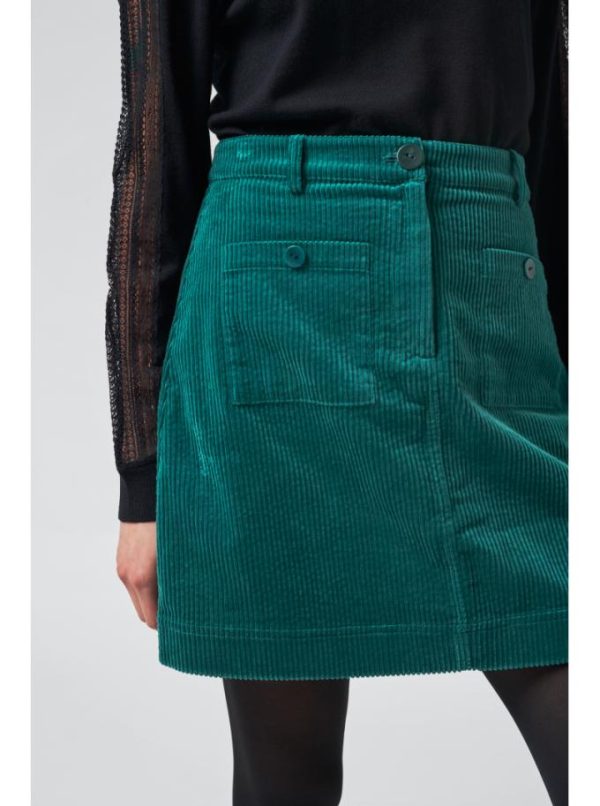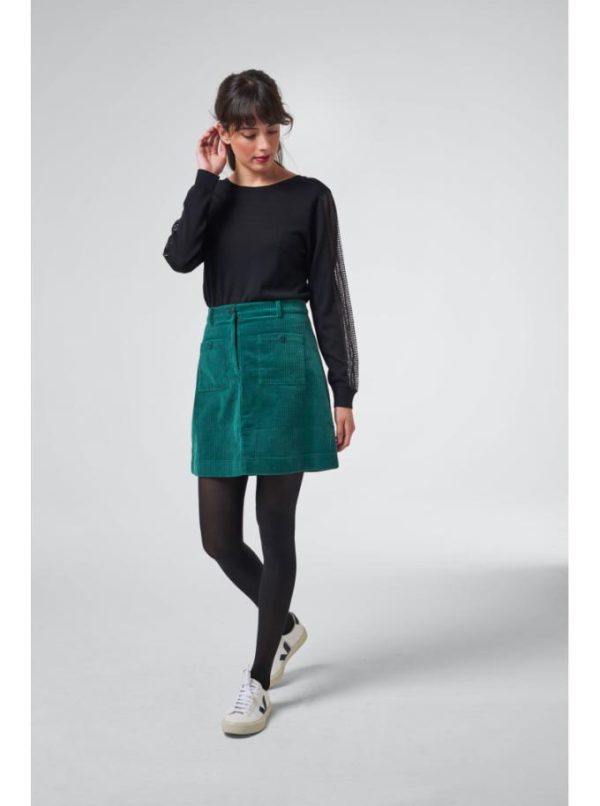 Le velours côtelé, une étoffe intemporelle qui traverse les saisons avec élégance. Cette saison, adoptez la jupe Casey, finement cintrée à la taille et délicatement évasée sur les hanches pour une silhouette mise en valeur. Deux poches plaquées avant lui confèrent un charme rétro audacieux. Une pièce versatile à porter sans modération, dans sa nuance forest profonde, associée à une chemise épurée ou imprimée, ou encore avec l’une de nos mailles aux finitions raffinées.