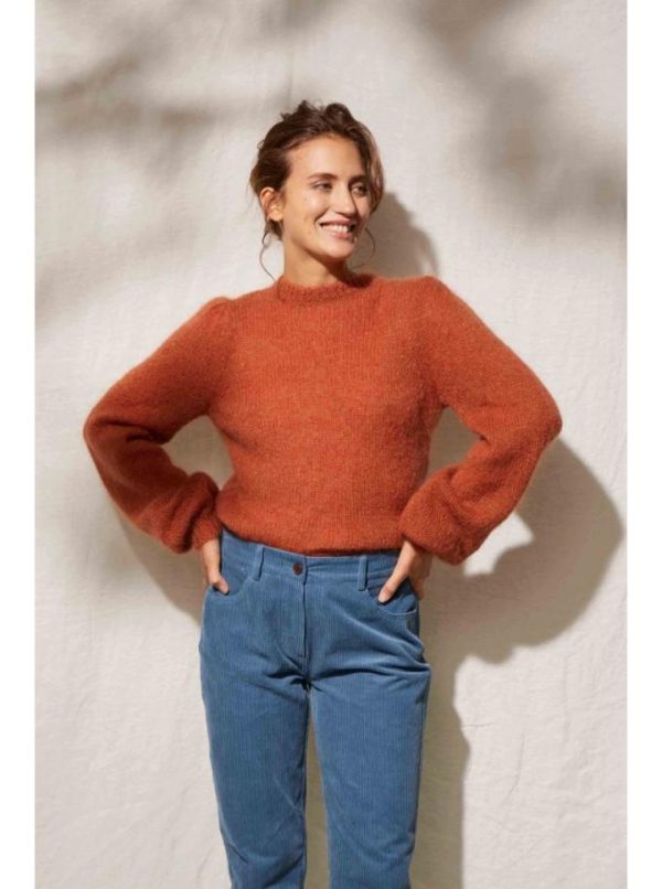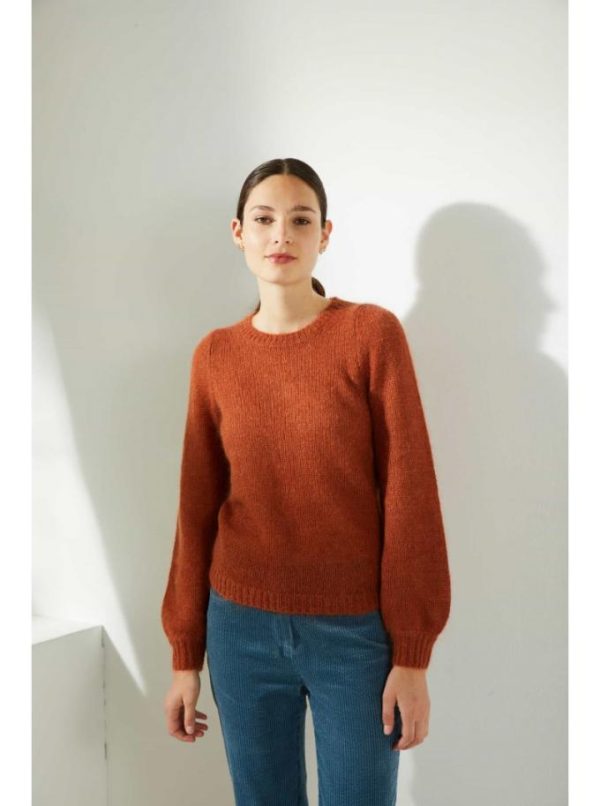 Pull col rond, au volume droit et longueur classique. Finitions côtes simples en bas de manches, col et bas de corps. Ses emmanchures délicatement ballon apportent une touche de féminité, ornées d’une fronce élégante à l’épaule.