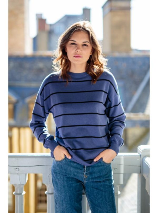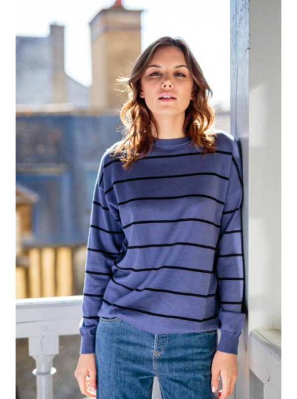 Pull Femme Ekyog Abela Rayé – Coton Bio Ardoise Noir