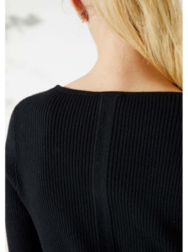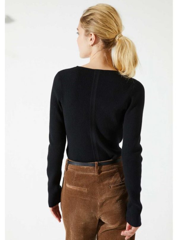 Tricoté en côtes très fines, il épouse délicatement les courbes du corps avec une élégance naturelle. Encolure arrondie. Il est orné d’une bande tricotée en relief au dos apportant une touche de sophistication.