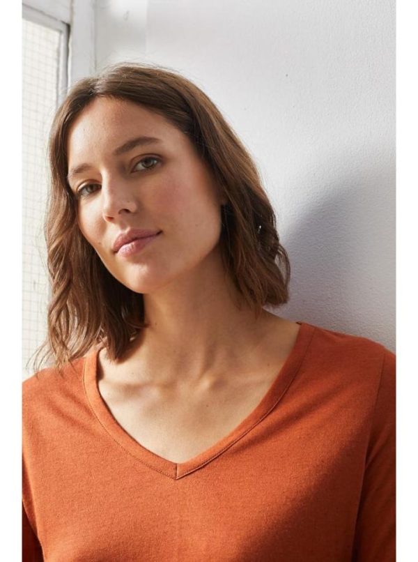 Notre T-shirt col roulé est composé à 90% de Micromodal et 10% cashmere.