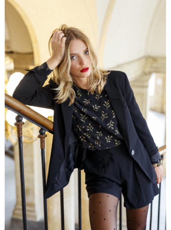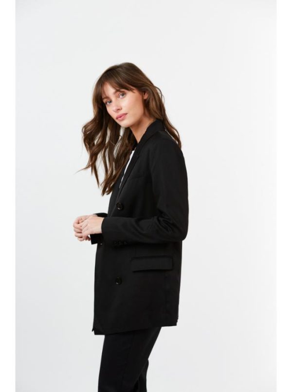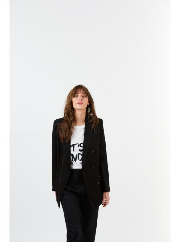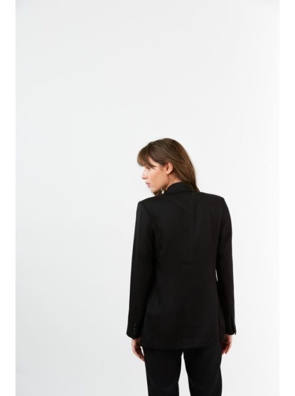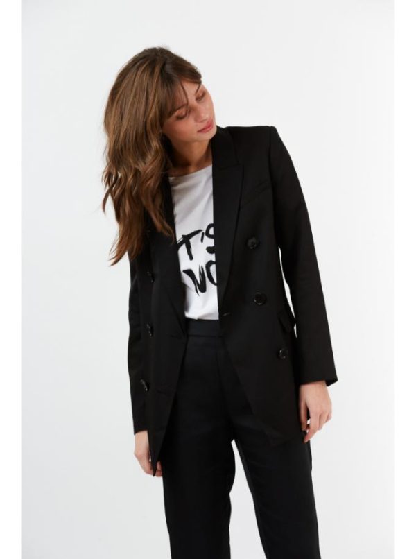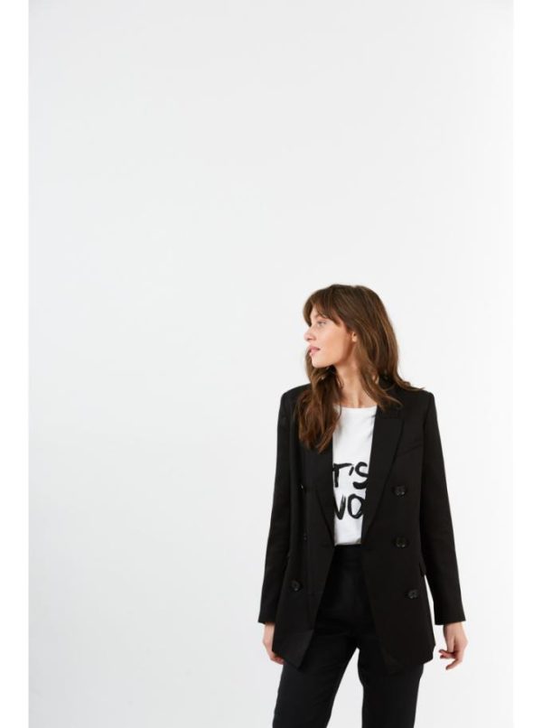 Veste de tailleur mi-longue d’une élégance intemporelle. Double boutonnage raffiné. Poches à rabat pratiques et stylées. Dimensions : Longueur 73 cm / Tour de poitrine 90 cm Léa mesure 1m67 et porte une taille 38 100% lyocell doublure: 100% polyester recycle Le lyocell, matière d’exception issue de la pulpe d’eucalyptus, incarne l’engagement écologique avec son bois provenant d’exploitations certifiées pour leur gestion durable. Cette fibre d’une douceur enveloppante offre une protection antibactérienne naturelle, une absorption optimale de l’humidité et une régulation thermique remarquable. Nettoyage à sec doux recommandé